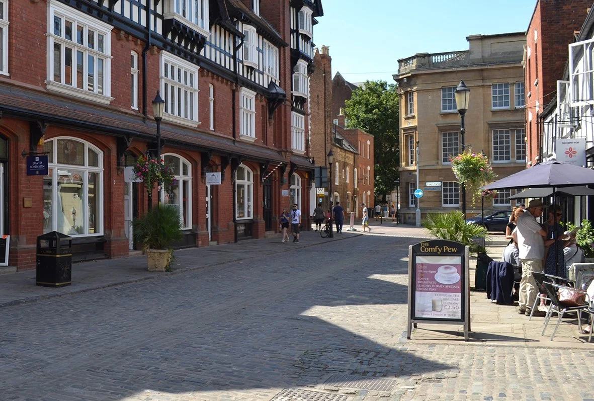 College street was initially very narrow, it was originally only 10 feet and 9 inches wide. It was widened by the Gloucester Cathedral Approaches Company in the 1890’s. This was to provide a ceremonial access to the Cathedral. This also made it much easier for trades to pass through and it became a busy hub of commerce. The widening of the street also meant that, today, as we turn into College Street we are greeted with a magnificent view of Gloucester Cathedral.
